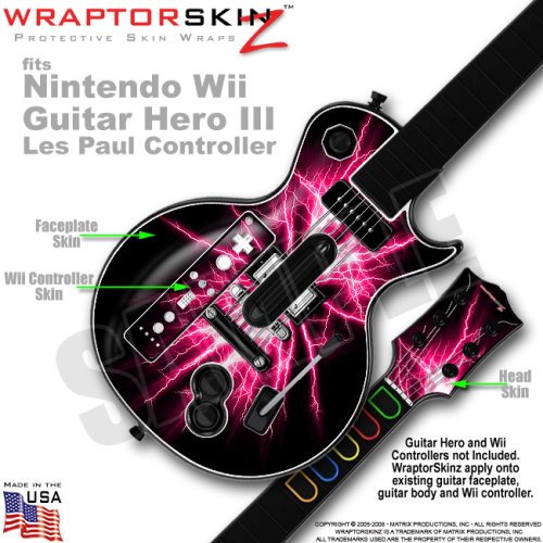 Lightning Pink Skin fits Wii Guitar Hero III (3) Les Paul Controller (GUITAR NOT INCLUDED) by WraptorSkinz TM